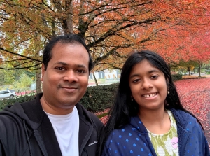 We are a family of four—my husband, my son, my daughter Esha, and me. My husband works in software, and I work for the local school district. Our son is 17 and in high school, and our daughter Esha is 13. Esha has autism and limited speech, but she’s very smart, very happy, and always smiling.